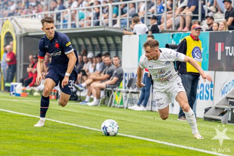 A double substitution followed, with Schranz and Jurásek replaced by Lukáš Provod and Mojmír Chytil, respectively, and Slavia's leading goal. Heča couldn't reach Tomáš Holeš's beautiful shot from his left foot, which ended up at the far post - 0:1. Provod was credited with the assist after a few seconds on the field.