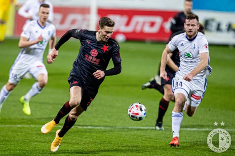 Jindřich Trpišovský made triple substitution in the 78th minute when Bah, Holeš and Yusuf came on the pitch, and it was Alexander Bah who played a key role in the situation leading to another goal just tree minutes later. Bah latched onto a pass on the right side of the box, Šimek blocked his cross, was judged to have handled and Slavia could execute a penalty. Another new face on the pitch Yusuf Helal scored the spot-kick and gave Slavia a three-goal cushion.